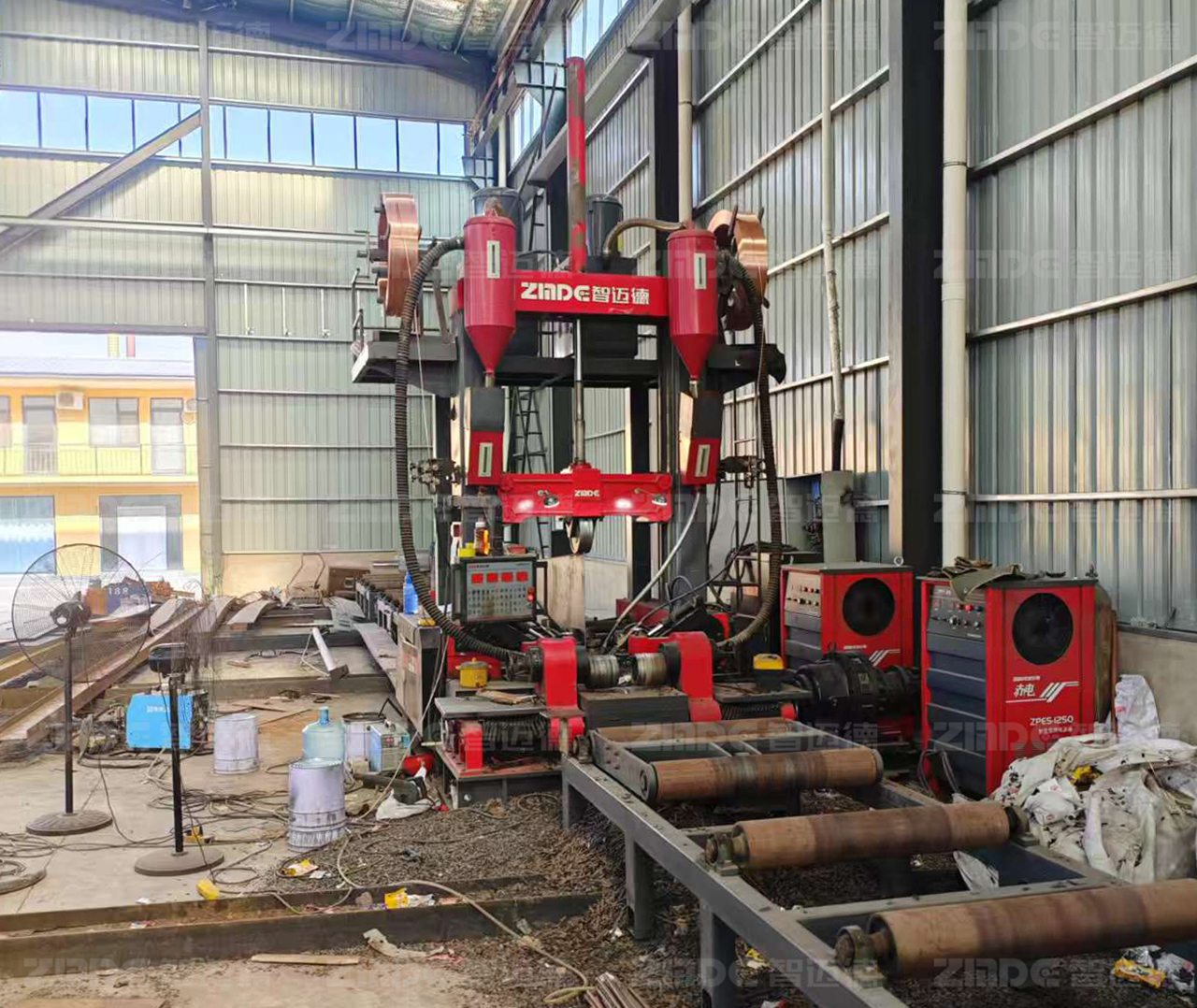 組立、焊接、矯正是鋼結構生產的關鍵工序,也是孫總的鋼構廠亟待提升的環節。“原來這三道工序需要不同的設備來完成,每臺設備需要人工操作,設備間的工件轉運需要行車吊運”孫總介紹道。當時,工廠里的組立機、龍門焊、矯正機已經陳舊老化,亟需更換。此時,“組焊矯一體機”進入了孫總的視野。“這設備好”,這是孫總的直觀反應,“一臺設備就能替代原來的三臺設備”。然而,對于如何選擇哪家的設備,孫總還是下足了心思,做足了功課。最終,在經過多方對比之后,孫總選擇了智邁德研發生產的裝配式H/T型建筑鋼梁組焊矯一體機。